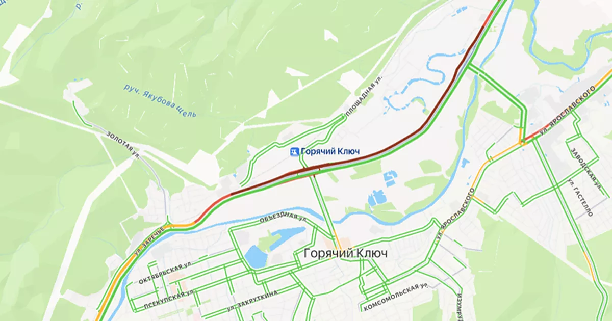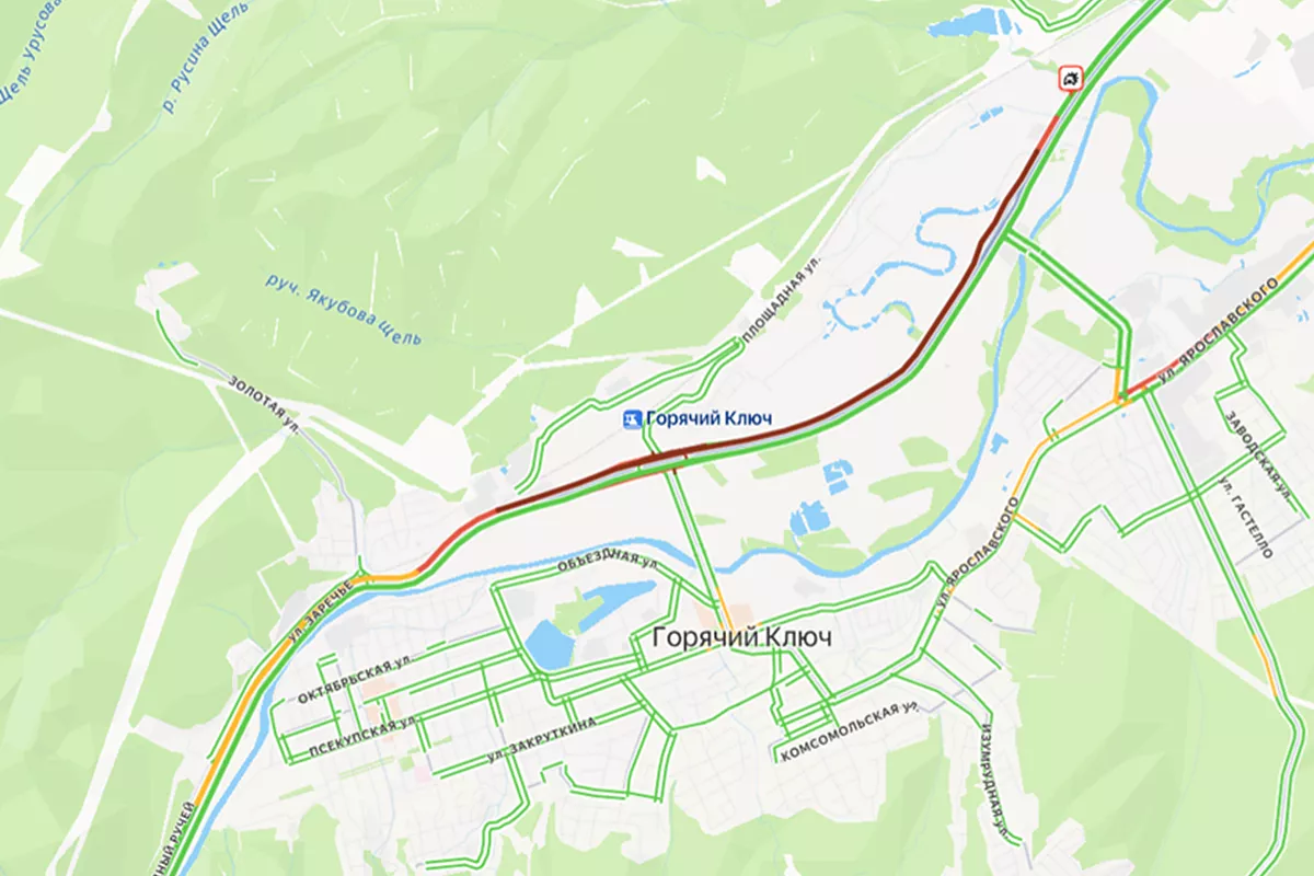 По данным «Яндекс.Карты», вереница машин стоит от въезда в город до популярной у туристов локации на курорте - скалы Петушок. Есть затруднения и на улице Ярославского в Горячем Ключе. Медленно едут авто по федеральной трассе за Хребтовым.