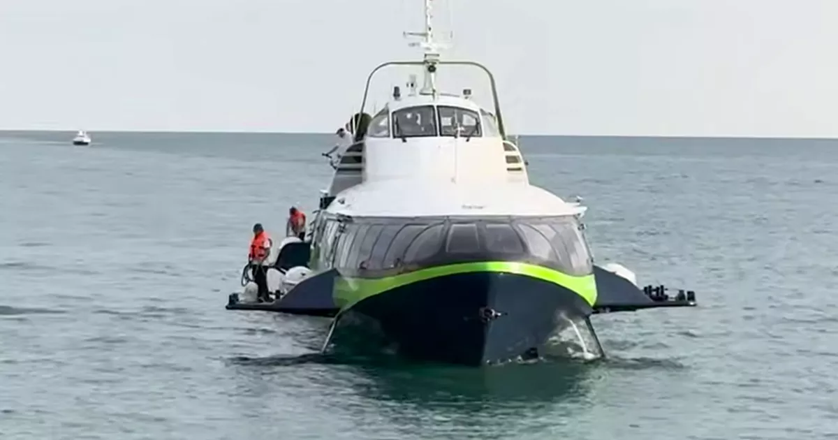 Скоростной теплоход «Космонавт Павел Попович» прошел 72 мили (146 км) вдоль черноморского побережья до порта Сухума. Здесь пассажиров встретили президент страны Бадра Гунба и первый замруководителя администрации президента РФ Сергей Кириенко. Об этом вечером 6 августа сообщила пресс-служба Минтранса РФ.