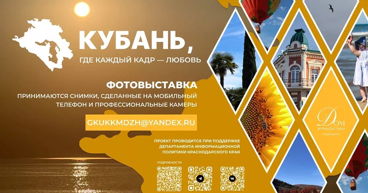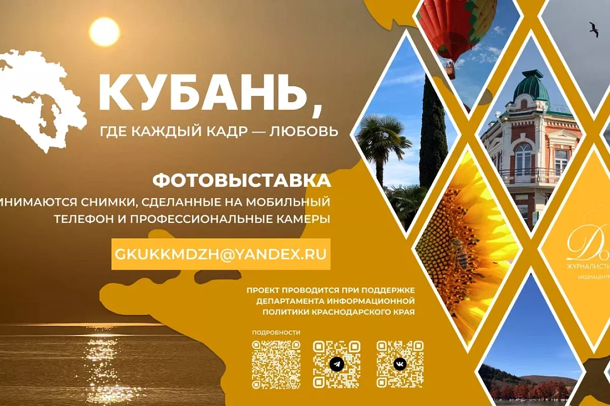- «Кубань, где каждый кадр - любовь» - фотовыставка, которая на одной площадке объединит работы как любителей, так и профессионалов! Самое главное, не важно, на что сделан снимок - на мобильный телефон или фотокамеру. Важно ваше видение и любовь к нашей малой родине. Выставка - это большое народное признание в любви к Кубани, созданное самими жителями. Это не взгляд со стороны, а искренний, теплый, иногда простодушный, но всегда настоящий портрет родного края, увиденный и запечатленный его жителями, - сообщили организаторы. В их числе ИД «Аргументы и Факты - Кубань» и департамент информационной политики Краснодарского края.
