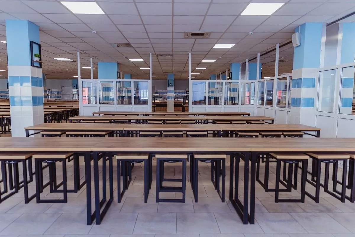В огромной, очень светлой и комфортной столовой работает комбинат школьного питания с полным циклом приготовления свежей и полезной пищи. С помощью электронной «Школьной карты ученика» каждый родитель ежедневно может контролировать, не только во сколько его ребенок переступил порог альма-матер и покинул ее, но чем и в каком часу подкрепился в школьном буфете. Благодаря нацпроекту «Образование» и контролю Единой службы заказчика, профессиональное оборудование для пищеблока и для других специализированных помещений, которое устанавливал «ИНСИТИ девелопмент», даже спустя год после активной эксплуатации, продолжает исправно работать.
