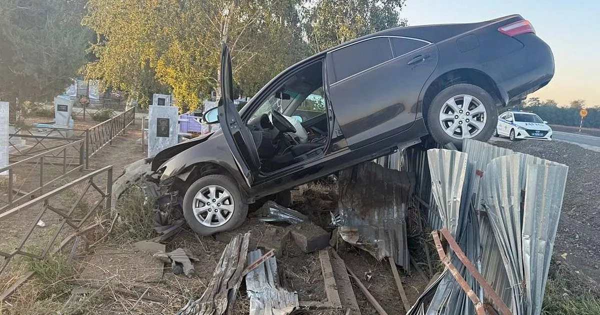 «Тойота» повисла на ограде кладбища в Курганинском районе. ДТП произошло ранним утром 17 августа. Водитель отделался испугом.