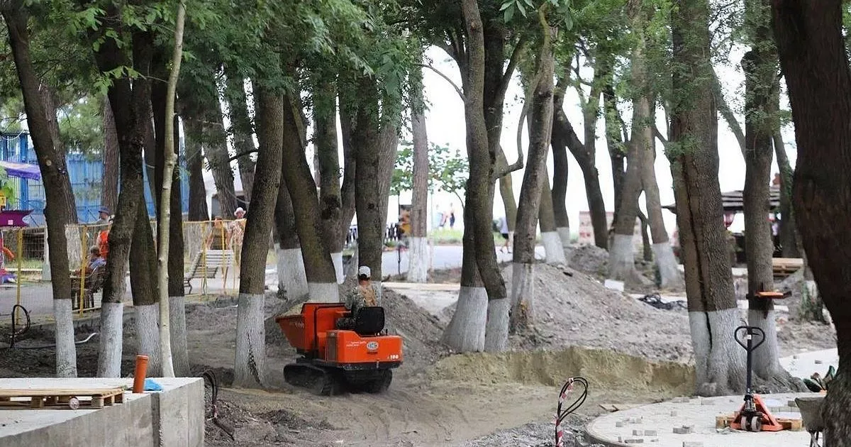 На территории уже проложены инженерные коммуникации. Подготовлены контуры пешеходных дорожек, залиты основания под современные площадки — детскую и спортивную. В ближайшее время начнется укладка рулонного газона и установка скамеек, урн, пергол.
