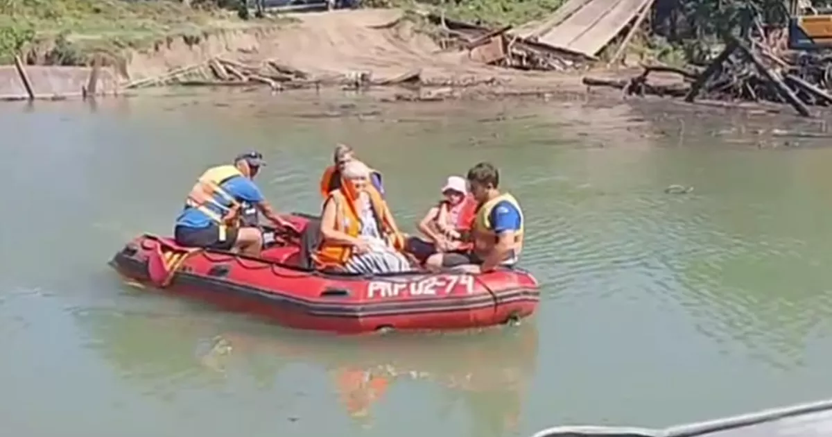 Переправа работает в поселке с 17 августа – жителей доставляют на лодке спасатели.