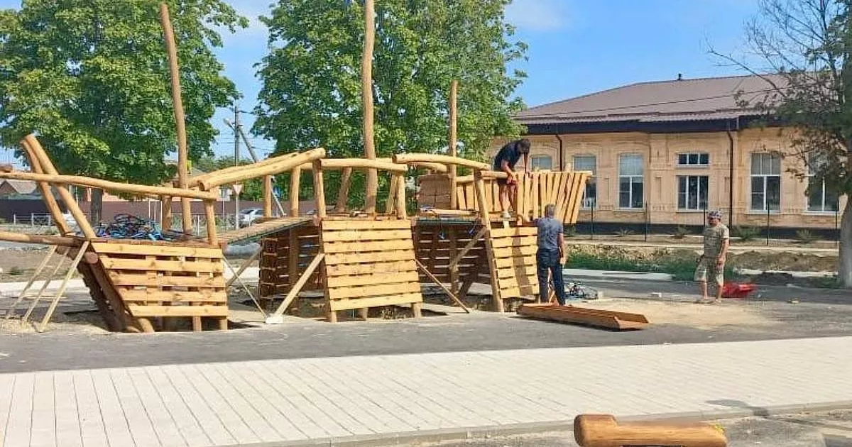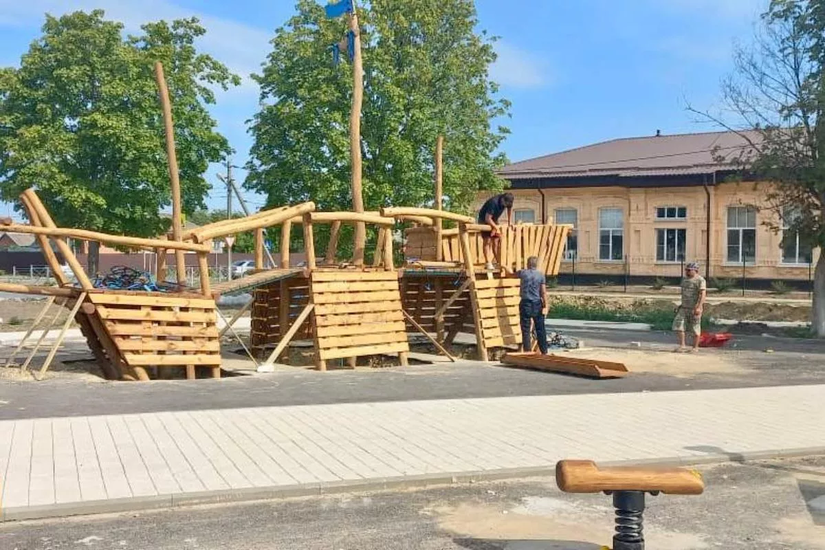 Сквер обновляют в станице Павловской по улице Большевистской рядом со школой №10. Работы ведут поэтапно с февраля и завершат уже в октябре.