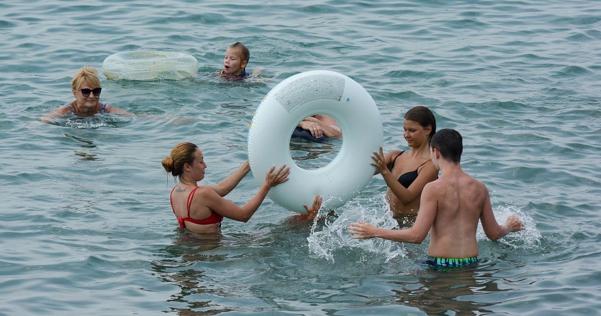 Жаркий день посетители пляжей предпочитают проводить, купаясь в море.