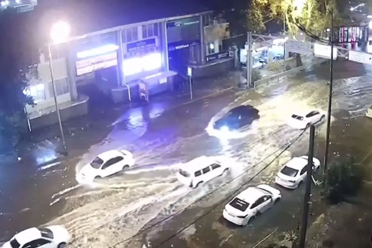 Прогноз синоптиков оправдался – ночью на курорте прошел ливень с градом. Под воду ушли улицы Тимирязева, Донская и другие. Автомобили с трудом преодолевали мощные потоки воды. К утру вода с улиц сошла.