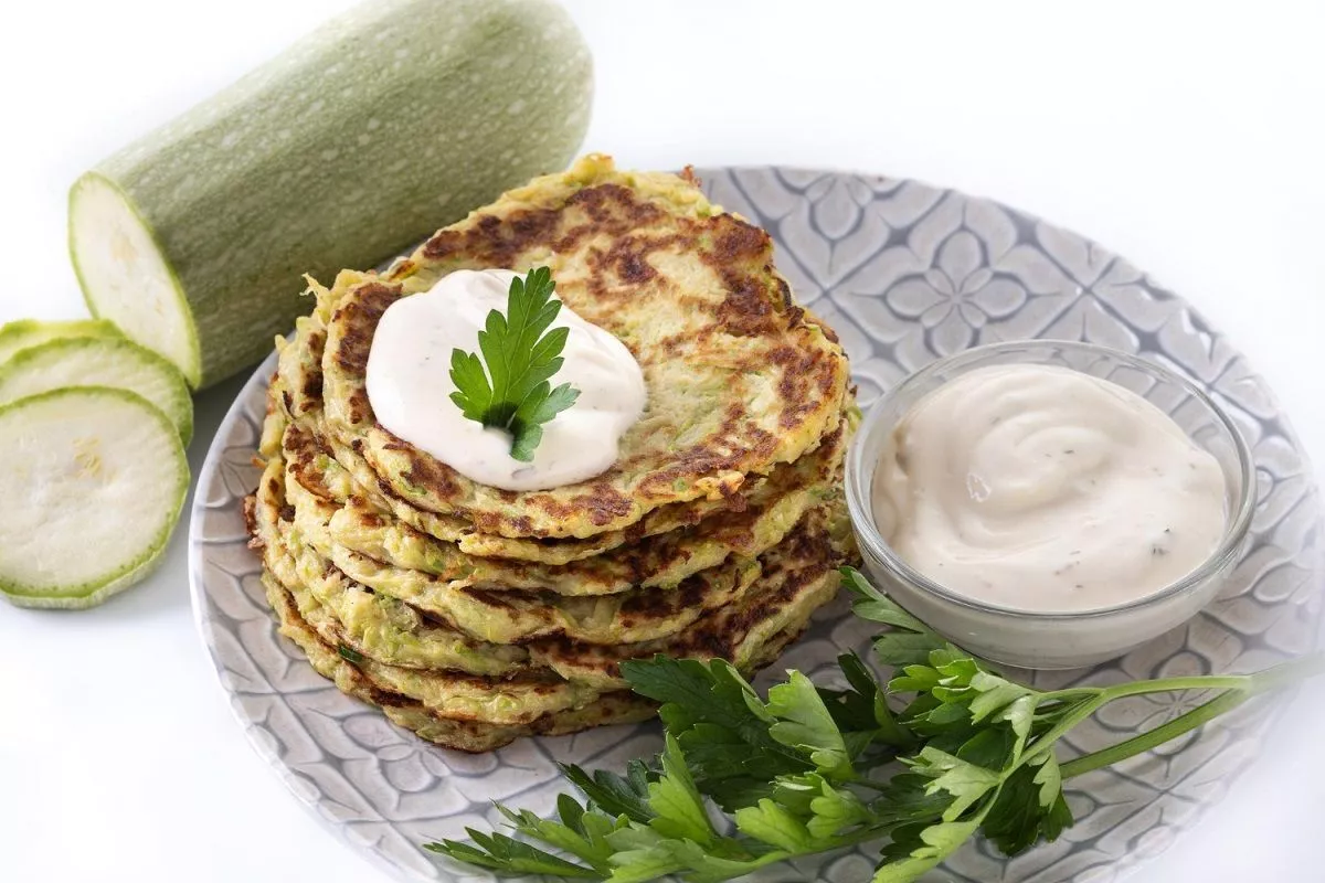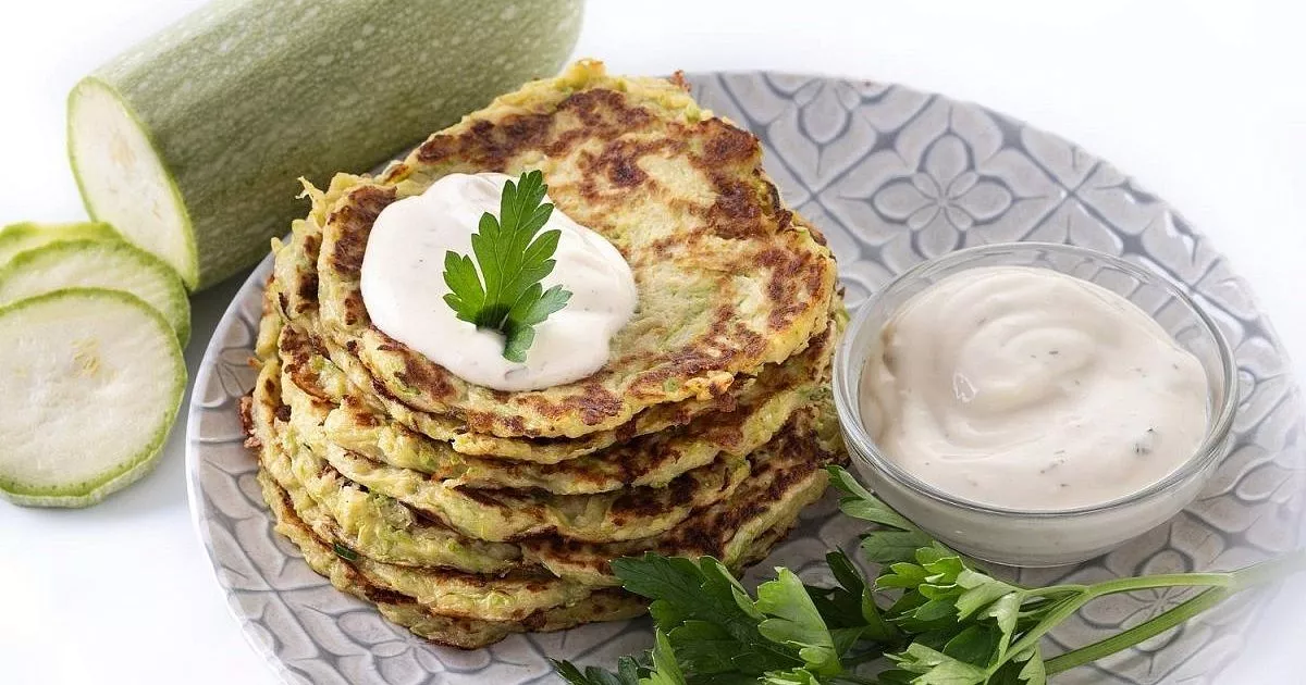 Идеальным дополнением к оладьям из кабачков станет сметана или чесночный соус.