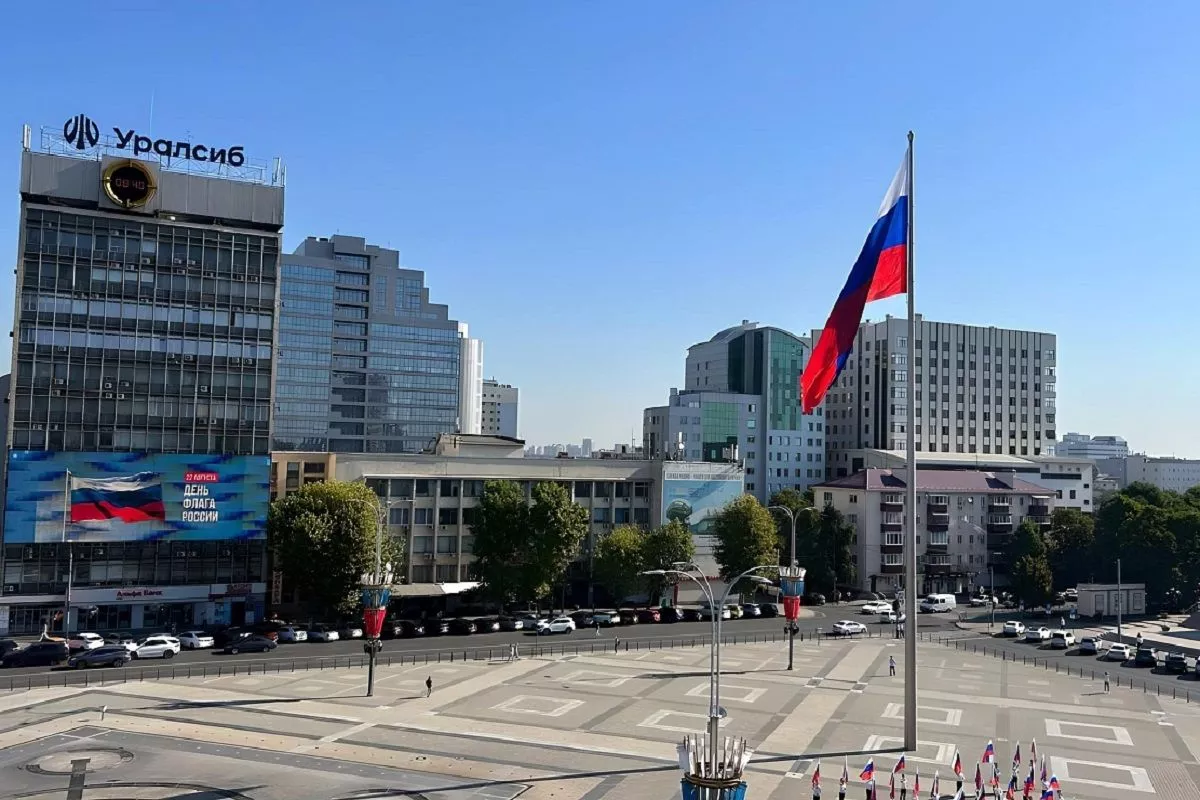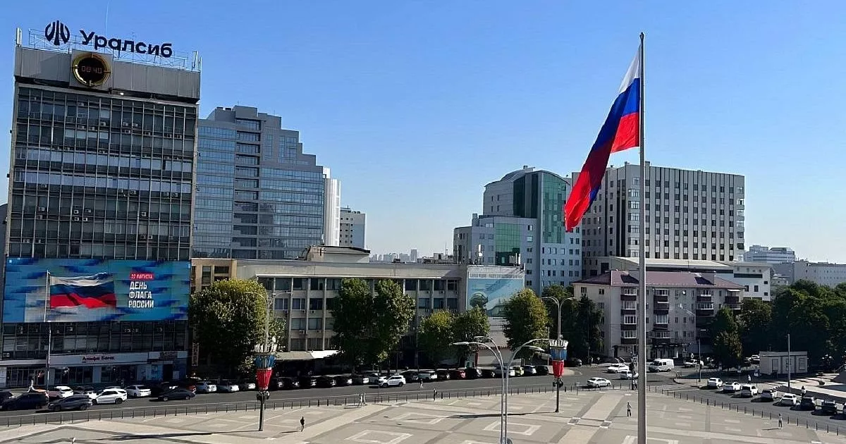 Участники СВО и активисты Поста №1 подняли флаг РФ над Главной городской площадью Краснодара.