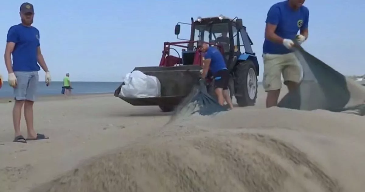 Отмечается, что за полгода сети значительно углубились в песок после зимних штормов, и теперь тяжелая техника помогает нам извлечь их из толщи пляжа, чтобы в дальнейшем они не мешали работе просеивающего оборудования.