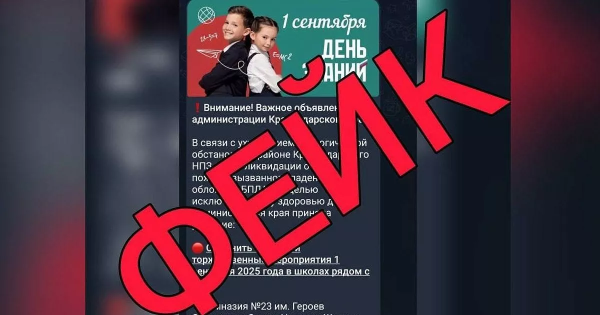 В Telegram неизвестные создали фейковый канал, который полностью дублирует канал администрации Краснодарского края. В нем разместили недостоверную информацию, якобы из-за пожара на Краснодарском НПЗ в близлежащих школах отменяют занятия и торжественные линейки 1 сентября.