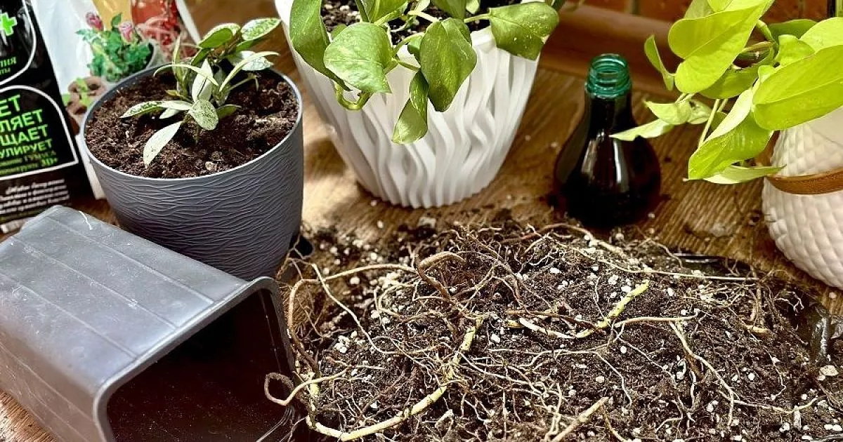 Оставьте растение на воздухе в тени на 2–4 часа, не допуская пересыхания нежных корней, особенно у спатифиллумов и калатей.