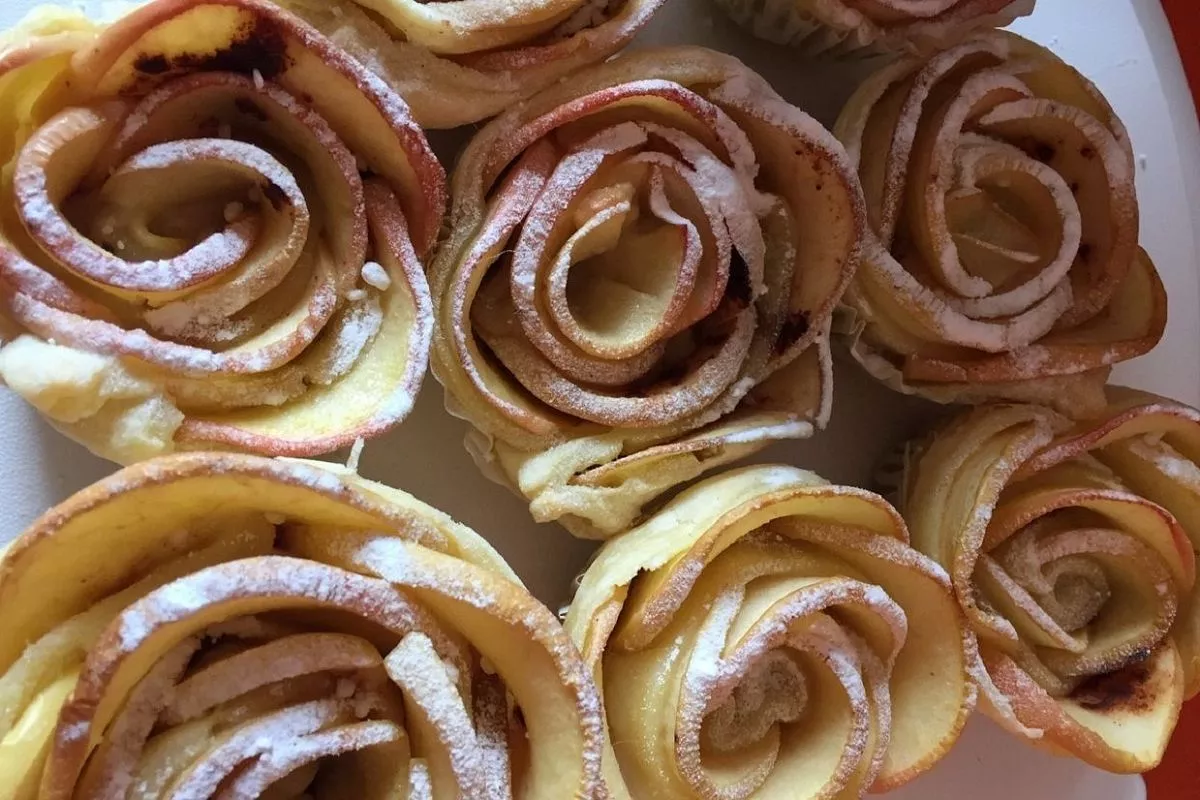 Запекайте «розочки» в духовке, разогретой до 200 градусов, примерно 40-50 минут. Перед подачей присыпьте ваши цветы из яблок сахарной пудрой - они станут еще красивее и вкуснее. Приятного чаепития!