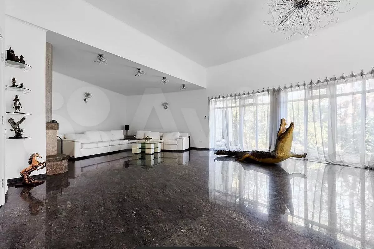 Открывает подборку дом площадью 1100 кв. м, расположенный на участке 18 соток, который продают на «Авито» за 400 млн рублей. Внутри просторные спальни, кухня-столовая, зал с камином и просторная зона отдыха. На цокольном этаже расположены бильярдная, спортзал и хозяйственные помещения. Дом оборудован двумя зонами проживания, что позволяет комфортно проживать двум семьям. На придомовом участке расположены бассейн и гараж. В объявлении указано, что в доме выполнен косметический ремонт.