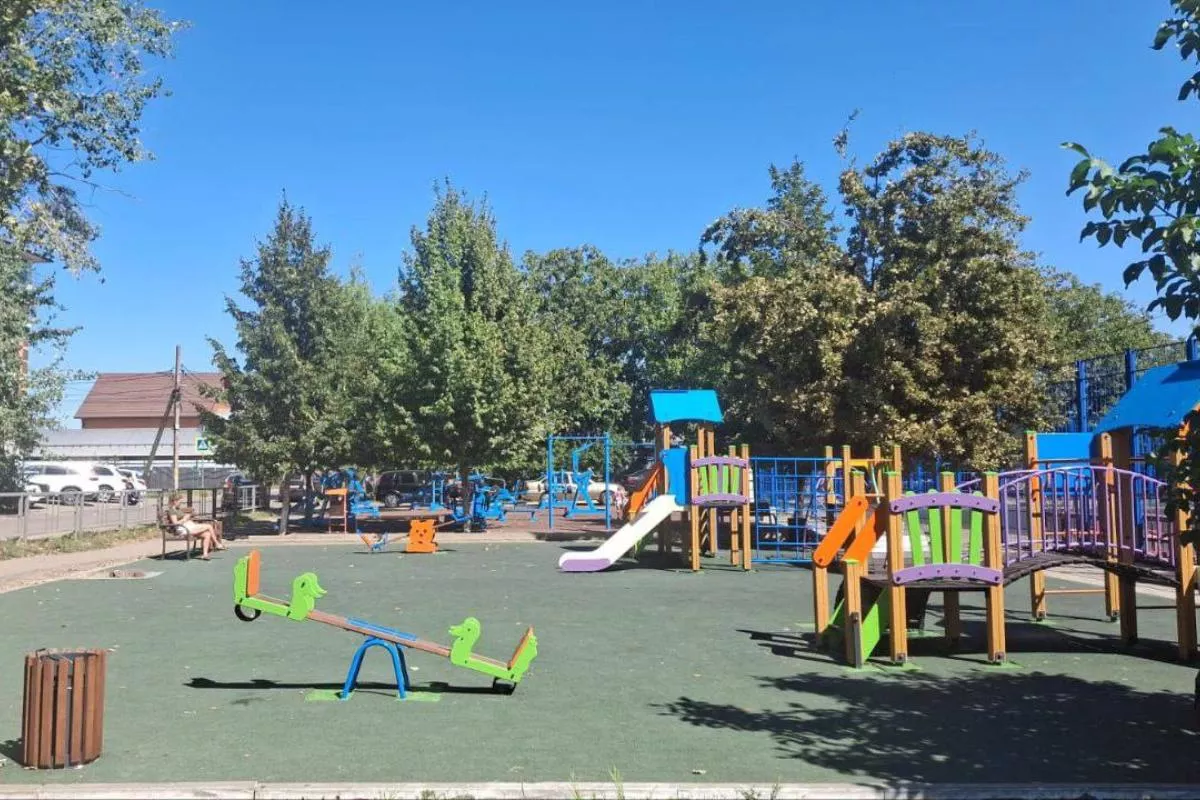 Специалисты заасфальтировали придомовую территорию, оборудовали освещение и установили детскую площадку.