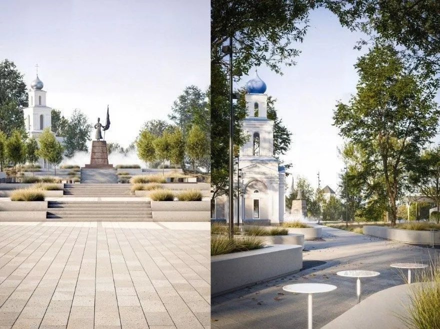 На площади 1,6 га появятся зоны отдыха, фонтан, часовня и парковка. Будет обновлен мемориал боевой славы и Вечный огонь.