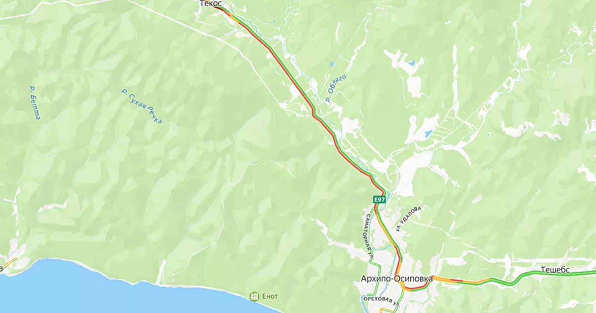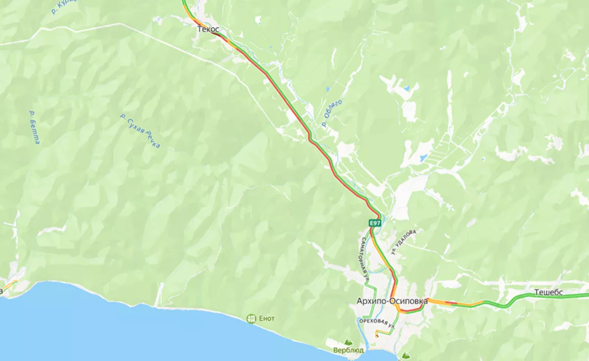 По данным «Яндекс. Карты», одна из пробок растянулась от смотровой площадки неподалеку от Дедеркоя до моста через реку в Туапсе. Другая - от выезда из Ольгинки до центра Новомихайловского. Медленно едут машины и в Джубге.