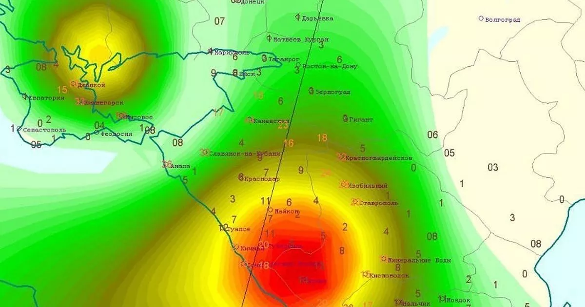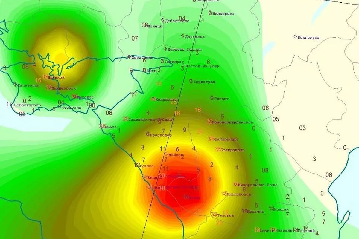 - Много осадков выпало на северо-востоке Крыма: Мысовое – 56 мм (полторы месячной нормы), Нижнегорск – 33 мм. Аномальные ливни – до месячной нормы - прошли на севере Кубани (Каневская – 44 мм, норма всего сентября - 46 мм, Анапа – 36 мм, норма сентября 55 мм), Ставрополья (Красногвардейское – 32 мм), в Кабардино-Балкарии (Терскол – 33 мм), Ингушетии (Назрань – 19 мм), Чечне (Грозный – 14 мм), - написал специалист.