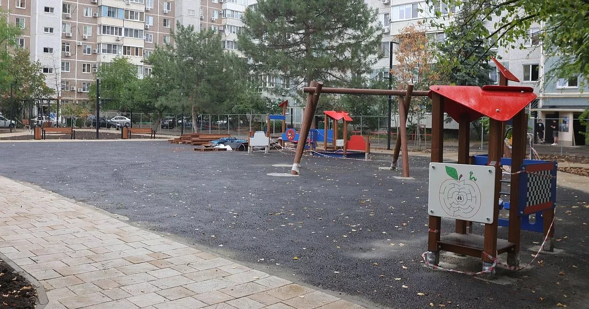 Рядом по программе «Развитие физической культуры и спорта в муниципальном образовании город Краснодар» идет капительный ремонт спортивной площадки.