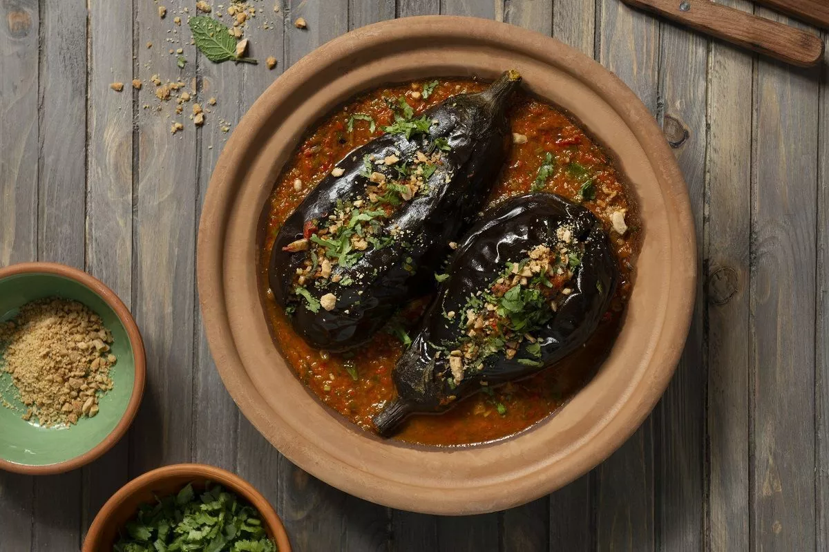 При приготовлении фаршированных печенных баклажанов самое сложное - приготовить начинку и не съесть их все самому, пока семья собирается на обед.