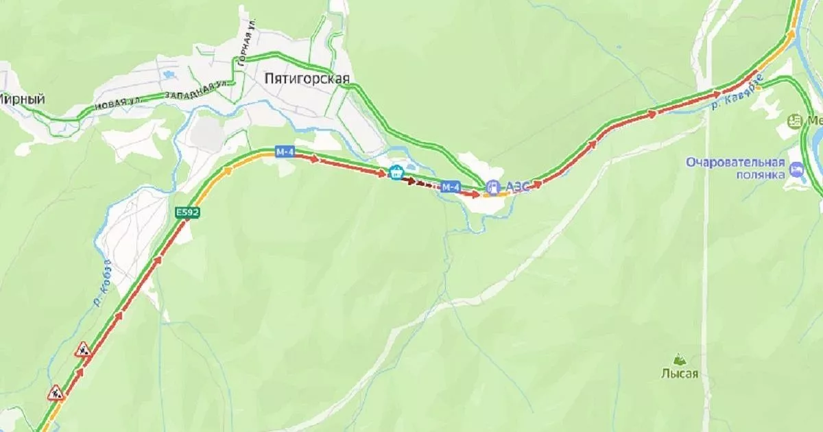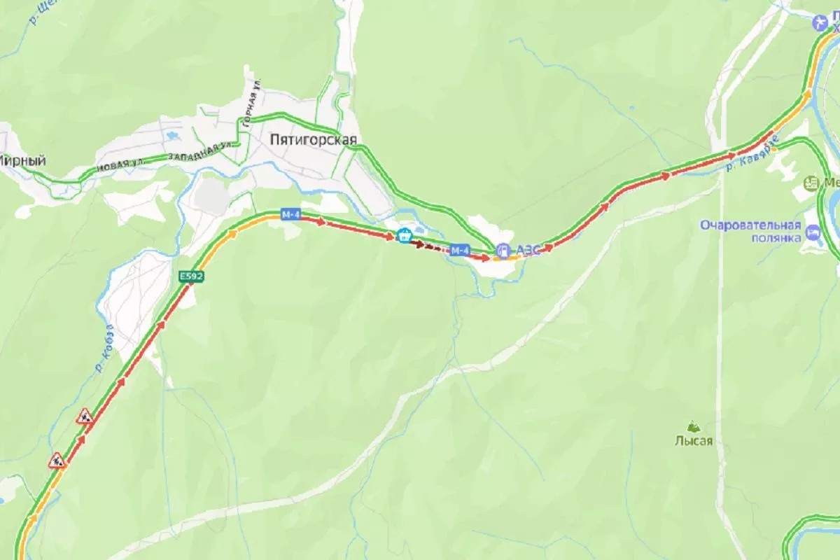 По данным «Яндекс.Карты», затор протяженностью почти 10 км - наблюдается в направлении Краснодара перед Горячим Ключом. Начинается он на 1400-м км трассы, перед станицей Пятигорской, и заканчивается у «Старого замка». Кроме того, девятикилометровая пробка образовалась в Туапсинском районе на подъезде к Молдавановке. Заканчивается она в районе смотровой площадки на перевале Хребтовом. На въезде в Краснодар трасса свободна.