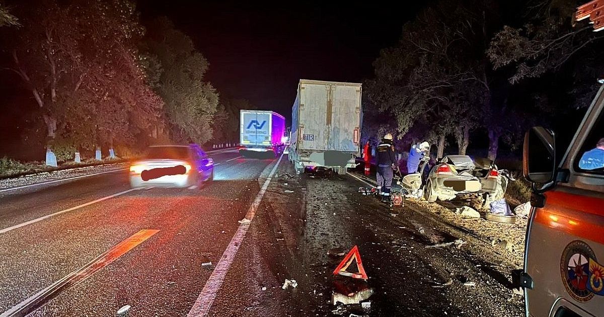 - Вчера в 21.20 на автодороге «Кавказ» 75-летний водитель, управляя автомобилем «Ниссан Альмера», выехал на встречную полосу, где это запрещено, и лоб в лоб столкнулся с грузовиком «МАН» с прицепом, - говорится в сообщении главка полиции.