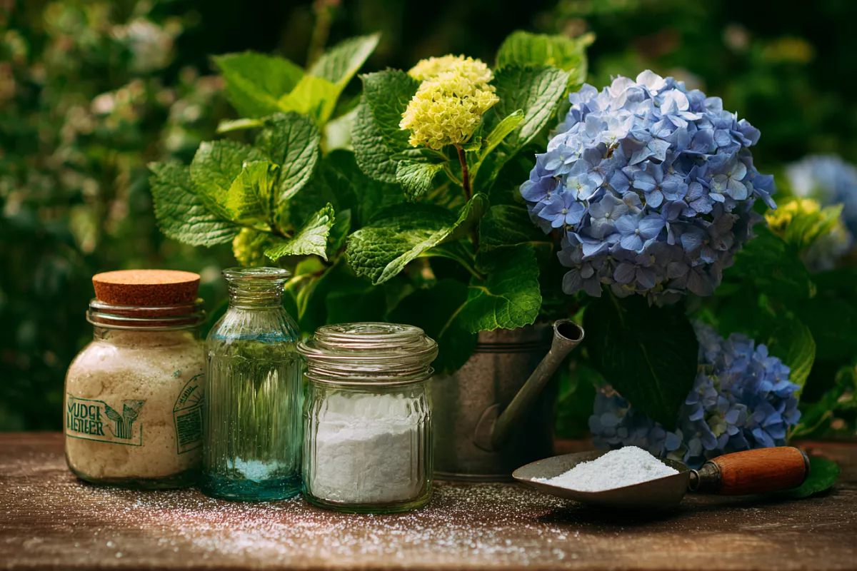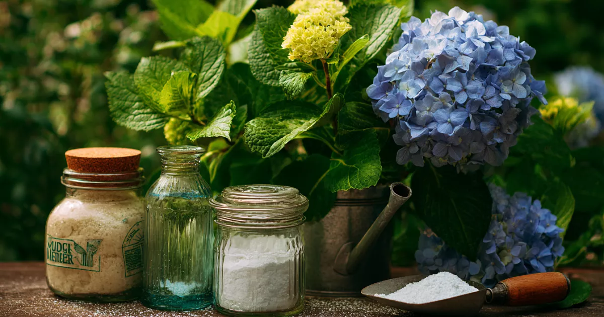 Через 10–14 дней после фосфорно-калийных подкормок вносят магний, чтобы предотвратить пожелтение листьев и замедление роста. Используют сульфат магния (1 ст. л. на куст), рассыпая вокруг растения или растворяя в 10 л воды. Менее популярная альтернатива — калий-магнезия, которую вносят так же. Магний особенно важен для гортензий, цветущих с июня, как сорт «Мельба», или поздно закладывающих соцветия, как «Полярный медведь».