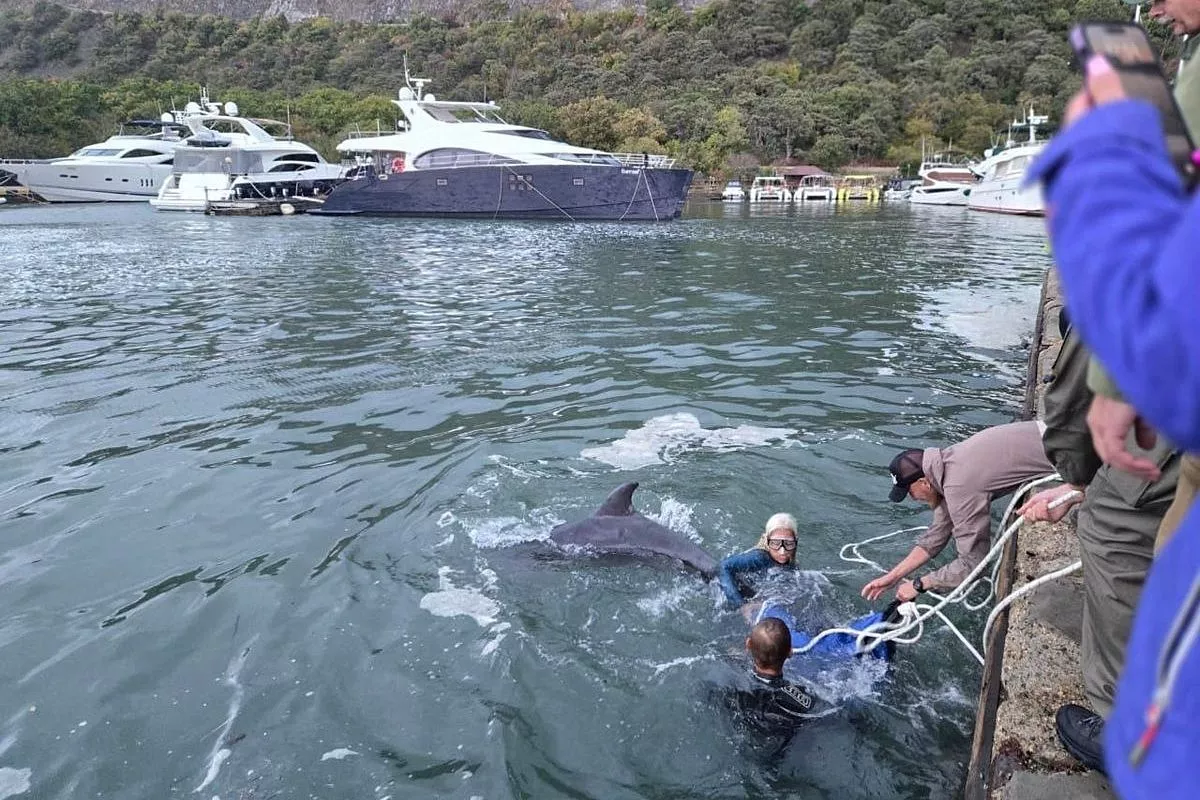 - Сперва специалисты поймали животное в сети, предварительно перегородив участок реки специальными плавучими средствами, и вытащили дельфина, после чего перевезли его на машине к месту выпуска в море. Ветеринары осмотрели млекопитающее, сняли много лесковой сети и крючков, обработали раны, сделали уколы. После того, как убедились, что дельфин находится в удовлетворительном состоянии, отпустили в свободное плавание в Черное море, - сообщается в телеграм-канале главы Росприроднадзора Светланы Радионовой.
