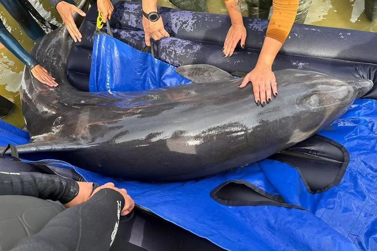 - Сперва специалисты поймали животное в сети, предварительно перегородив участок реки специальными плавучими средствами, и вытащили дельфина, после чего перевезли его на машине к месту выпуска в море. Ветеринары осмотрели млекопитающее, сняли много лесковой сети и крючков, обработали раны, сделали уколы. После того, как убедились, что дельфин находится в удовлетворительном состоянии, отпустили в свободное плавание в Черное море, - сообщается в телеграм-канале главы Росприроднадзора Светланы Радионовой.