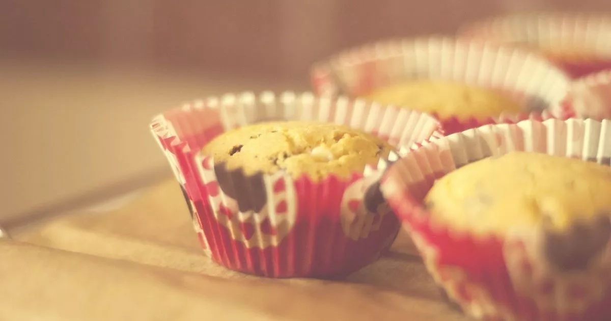 Формочки для кексов смажьте небольшим количеством маргарина, разложите в каждую тесто, заполняя их примерно на 2/3 объема. Выпекайте кексы в духовке, разогретой до 180 градусов в течение 20-25 минут. Когда шапочки кексов начнут выглядывать из формочек и станут золотистого цвета - они готовы.