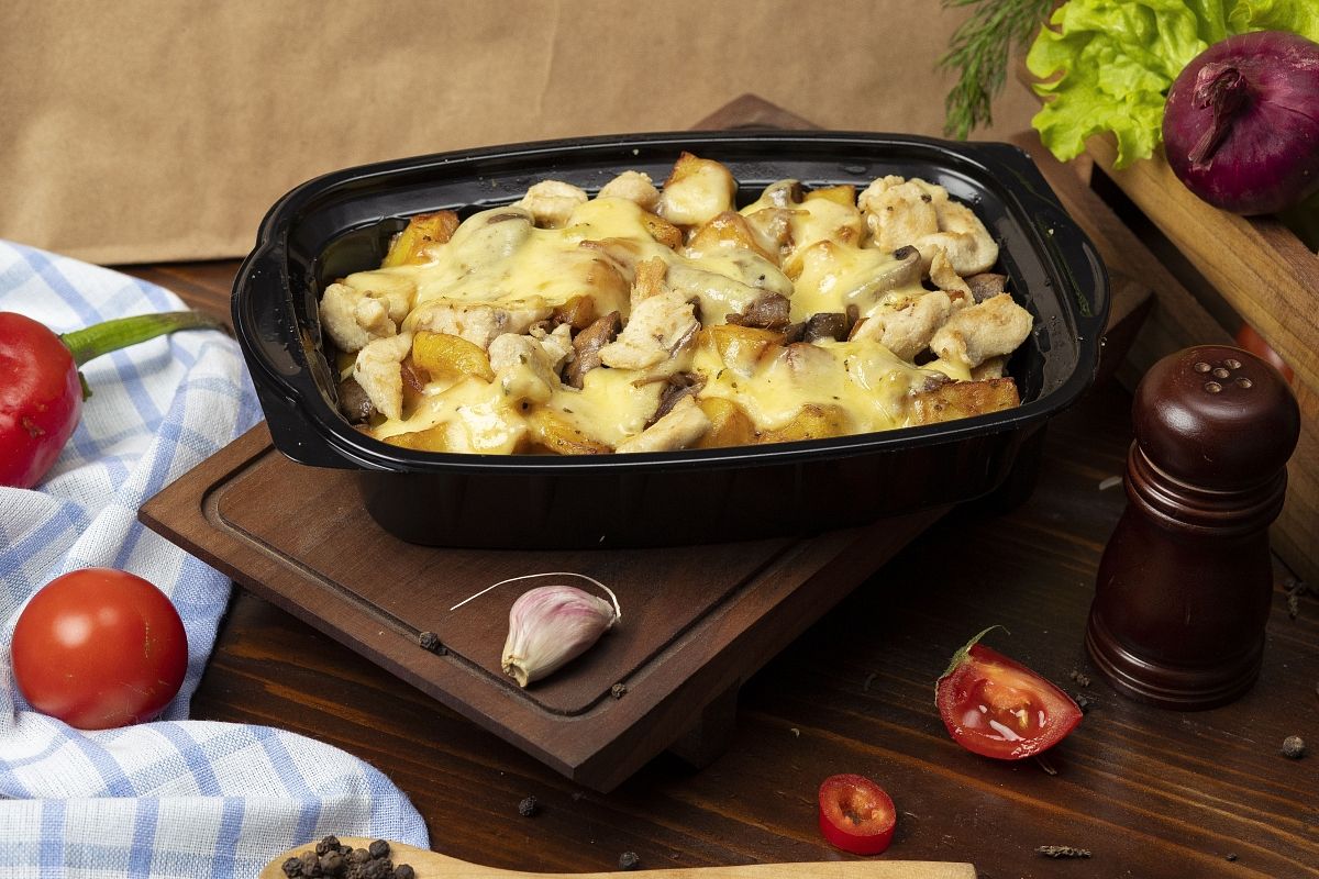 Запекайте блюдо 25-30 минут при 180°C до золотистой корочки. Секрет: последние 5 минут включите гриль для хрустящей корочки