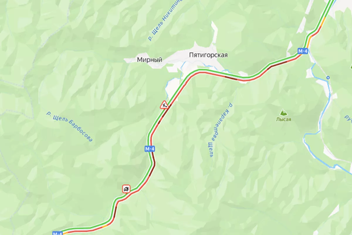 По данным «Яндекс.Карты», машины стоят по направлению к Краснодару от Хребтового до въезда в Горячий Ключ. В обратном направлении проезд свободен.