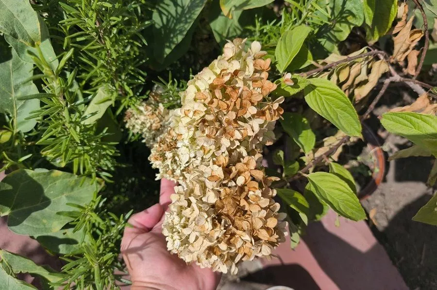 Определить готовность метельчатой гортензии к осенним манипуляциям легко – нижняя треть листьев становится желтоватой, а цветоносы темнеют, но при этом сохраняют прочность.