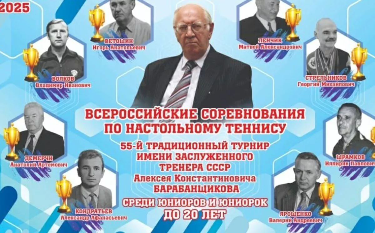55-й турнир по настольному теннису имени заслуженного тренера СССР и РСФСР Алексея Барабанщикова стартует в Славянске-на-Кубани 24 сентября. Всероссийские соревнования традиционно собирают сильнейших спортсменов до 20 лет из разных регионов страны.