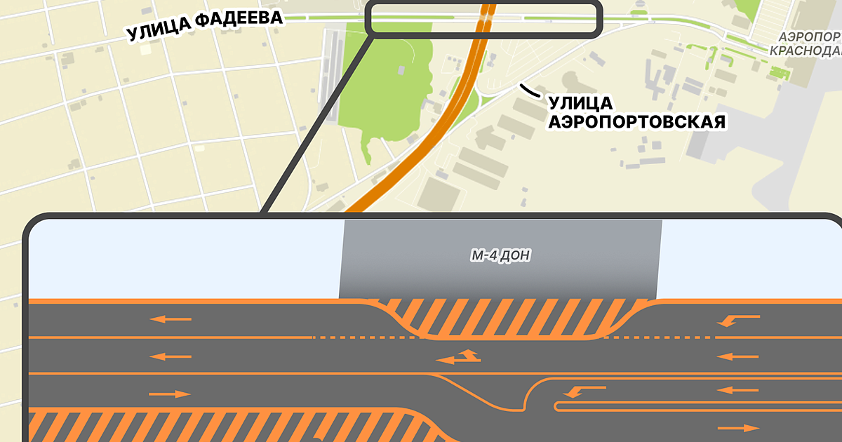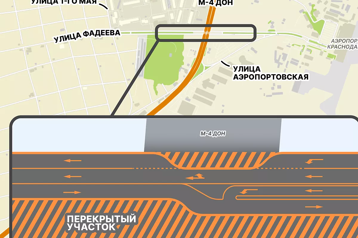 - Движение по ул. им. Фадеева будет организовано с сужением проезжей части до двух полос. При этом маршруты движения общественного транспорта не изменятся, а также сохранится подъезд и выезд к территории аэропорта по ул. Аэропортовской, - говорится в публикации.