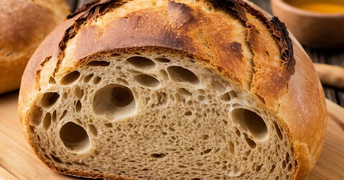 Такой хлеб обладает низким гликемическим индексом и долго сохраняет чувство сытости. Его пористость и эластичность достигаются благодаря медленному брожению, а не быстрым дрожжам.