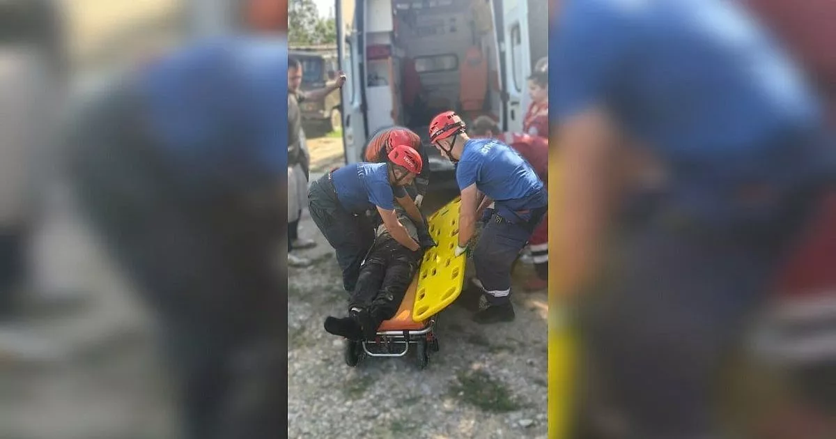 Спасатели уложили пострадавшего на носилки и транспортировали к машине скорой помощи.
