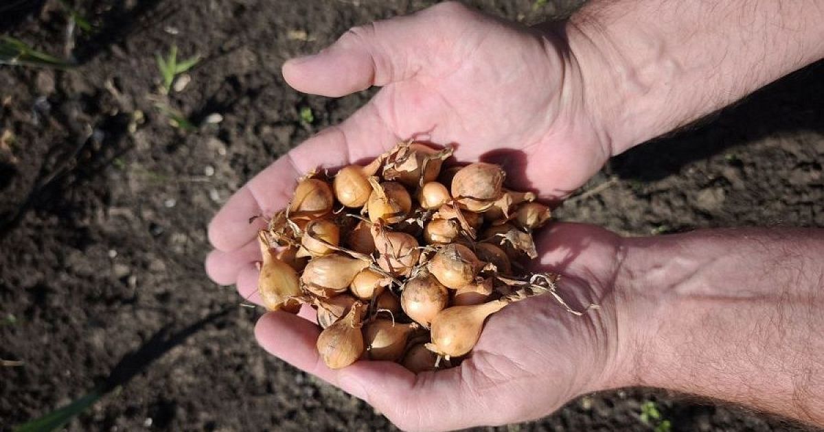 Для посадки выбирайте луковички диаметром около 1,5 см, крепкие и без повреждений. Перед высадкой лук замачивают в горячей воде на пару минут. Такая процедура помогает предотвратить преждевременное появление стрелок. Затем луковицы обрабатывают раствором марганцовки для дезинфекции. Важно при этом не обрезать шейки у луковиц, поскольку это увеличивает риск загнивания и гибели растения.