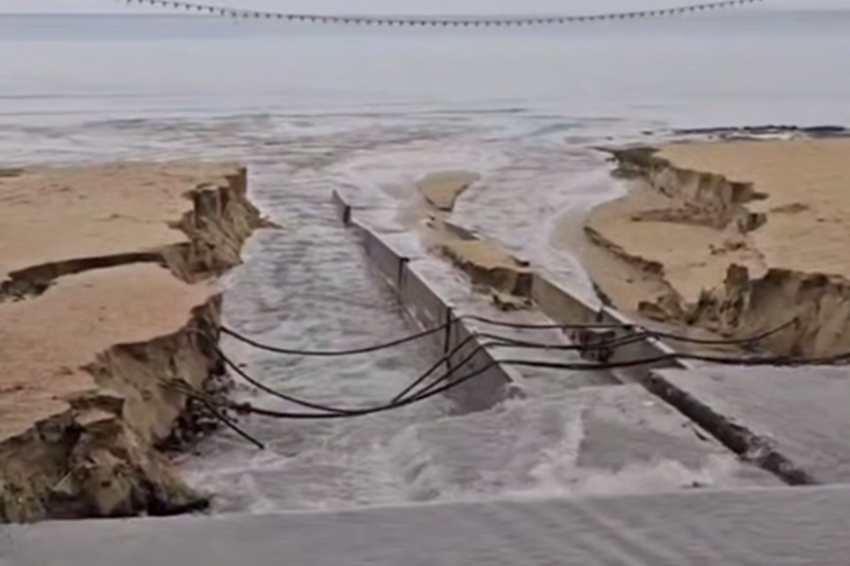 Глубокая промоина образовались утром 9 октября на Лечебном пляже курорта.