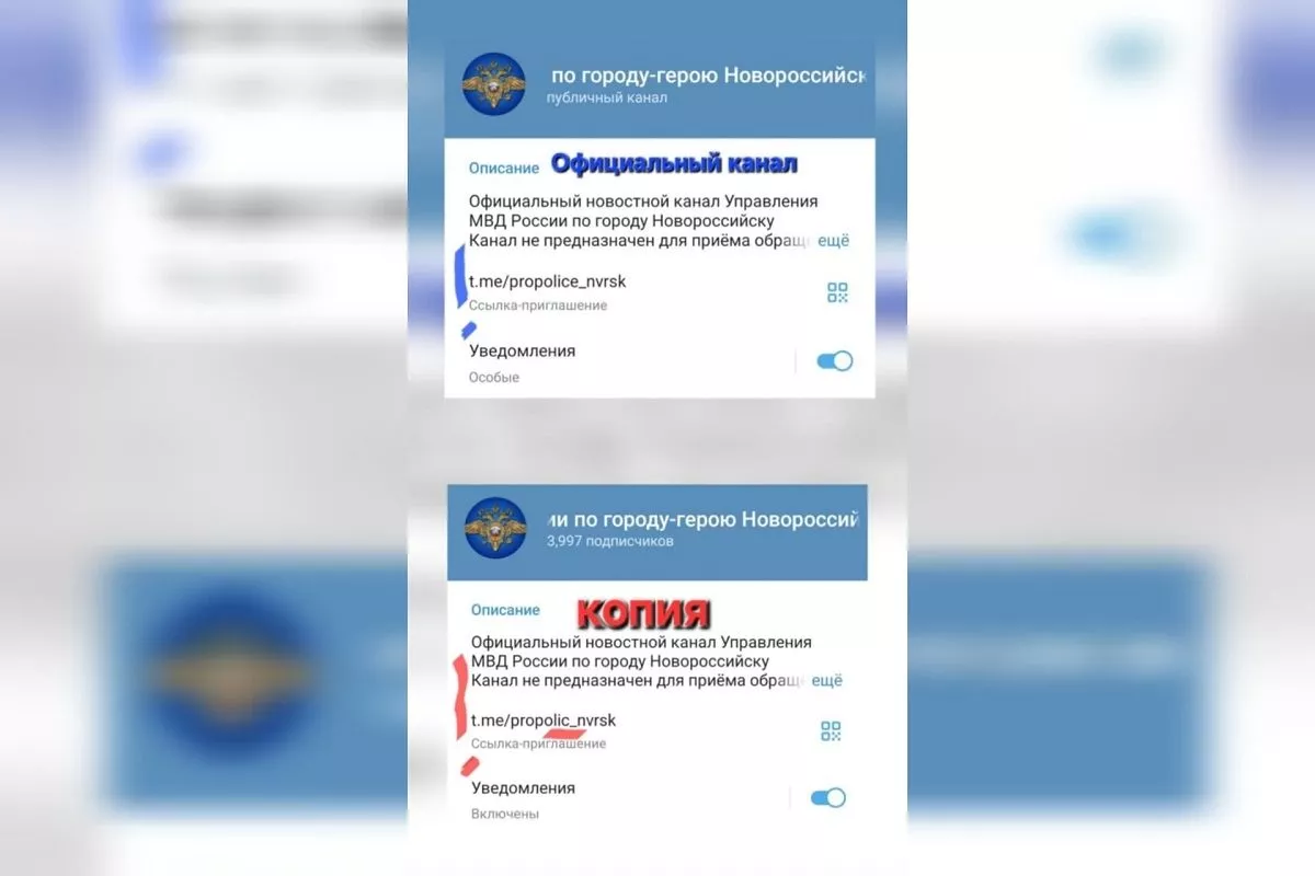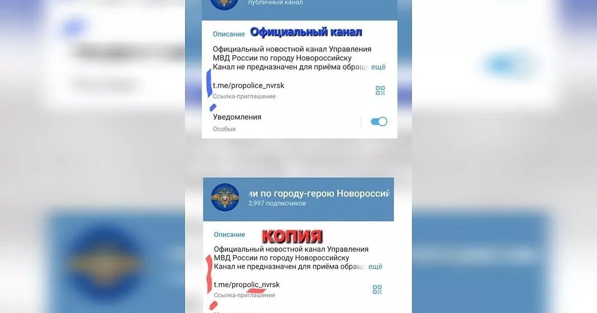Сегодня выявлен поддельный Telegram-канал «УМВД России по городу-герою Новороссийску», который полностью дублирует официальный. Об этом сообщили в пресс-службе регионального главка полиции.