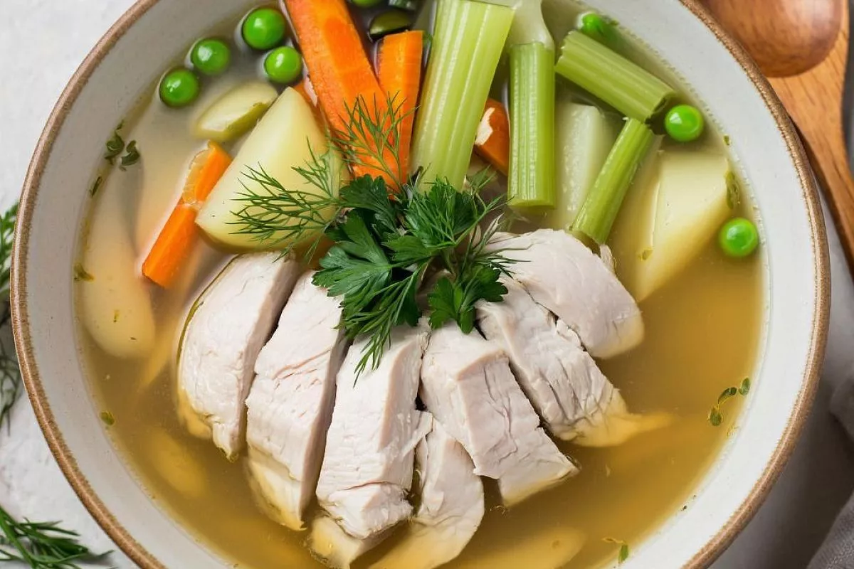 Тавук чорбасы традиционно готовится из куриной грудки или голени. Ключевым элементом является насыщенный бульон, который должен быть прозрачным и ароматным. Для этого мясо медленно варят, снимая пену и избегая бурного кипения.