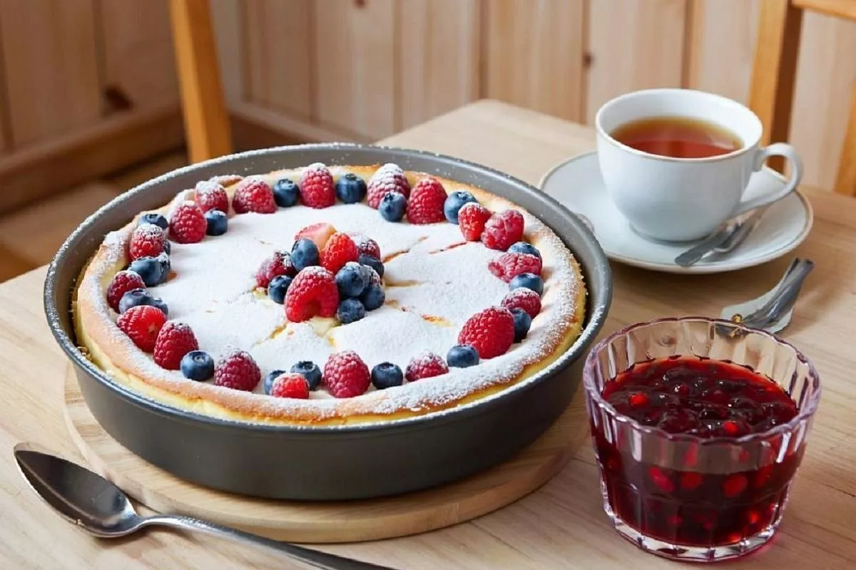 Запеканка из творога, в которой нет сахара, отлично сочетается с йогуртом, сметаной, ягодами или фруктовыми соусами.