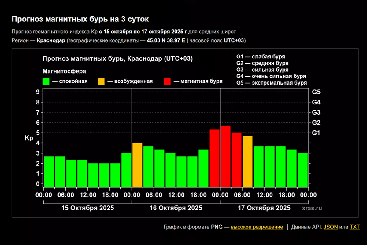 Всего в классификации магнитных бурь пять уровней - от G1 до G5. Считается, что слабая буря может спровоцировать незначительные сбои в работе энергосистем, а также повлиять на пути миграций птиц и животных. Сильные бури вызывают нарушения коротковолновой связи и работы навигационных систем, а также сбои напряжения в промышленных сетях.