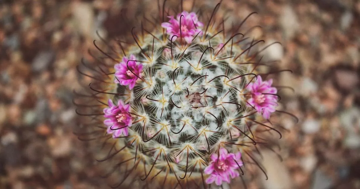Маммиллярия. Эти миниатюрные «шарики» или «цилиндры», густо усыпанные колючками, расцветают весной или летом венком из крошечных, но многочисленных цветочков вокруг своей макушки.