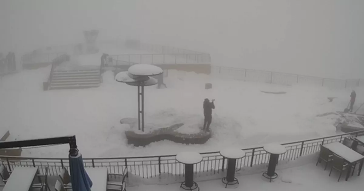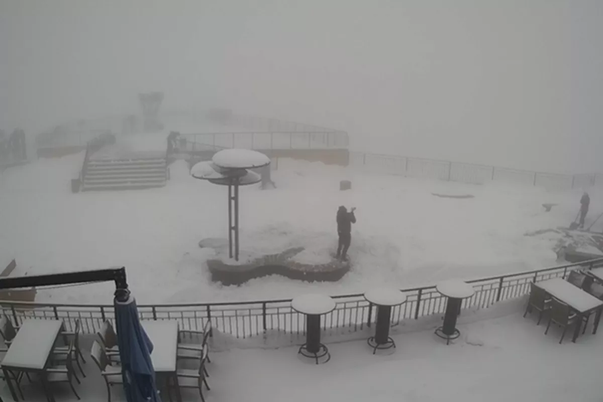 На локациях, расположенных ниже, белый покров еще не образовался. Там идет слабый дождь. Температура воздуха там от +5 до +10 градусов. Обзор на окрестности составляет от двух до пяти километров.