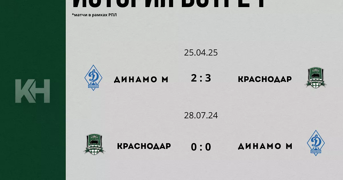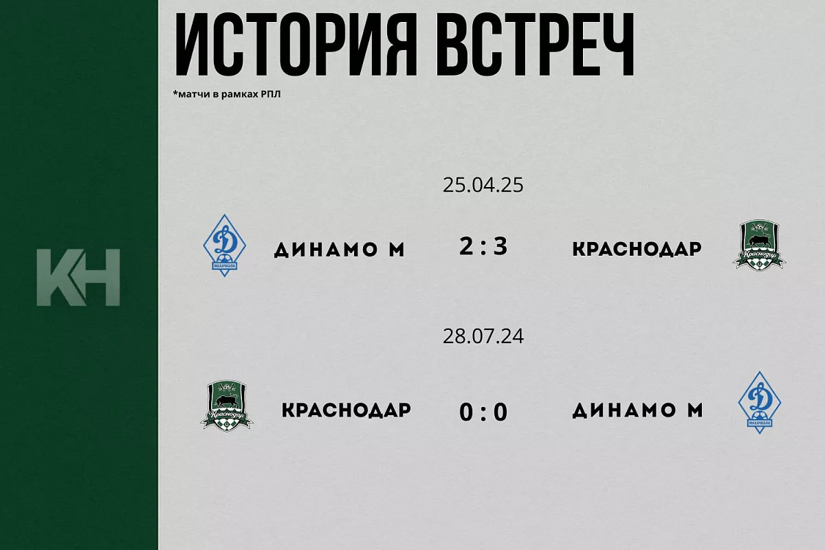 Прошлый сезон остался за «Краснодаром»: победа 3:2 в Махачкале и ничья 1:1 дома. Южане традиционно чувствуют себя уверенно в этих встречах, но лёгкой прогулки ждать не стоит. «Динамо» дома цепляется за каждый мяч и редко отпускает соперника без борьбы.