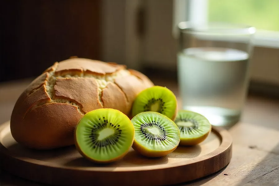 Киви содержит растворимую и нерастворимую клетчатку, органические кислоты и ферменты, которые активизируют работу желудочно-кишечного тракта. Ржаной хлеб насыщает организм витаминами группы B и служит питательной средой для полезной микрофлоры. А минеральная вода сульфатно-магниевого типа мягко стимулирует перистальтику.