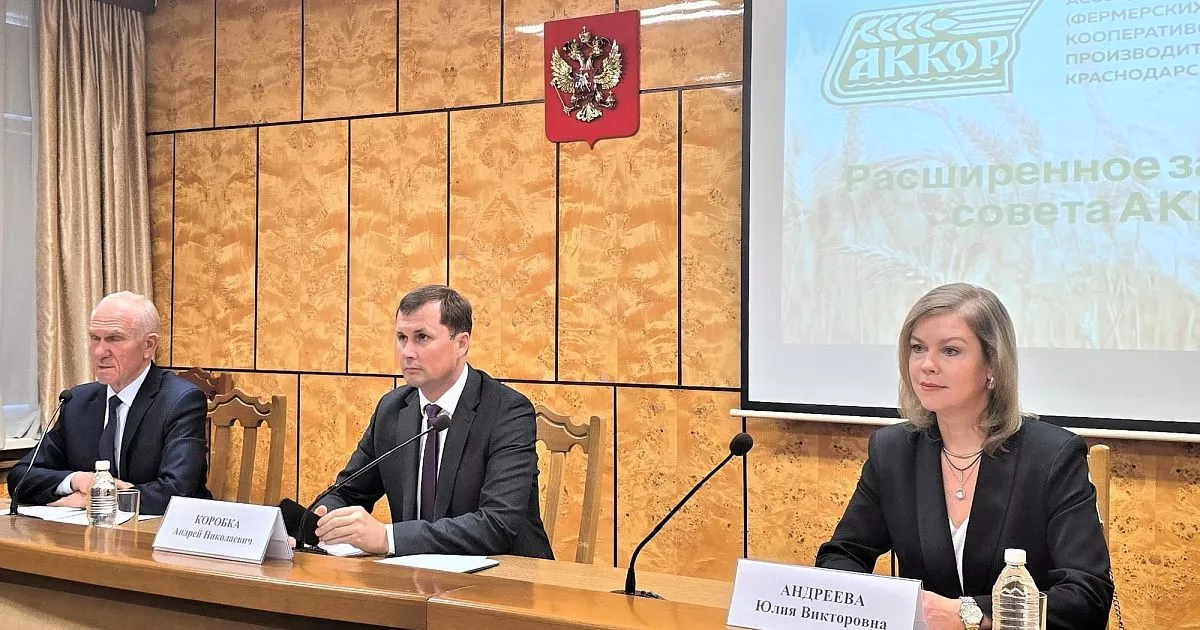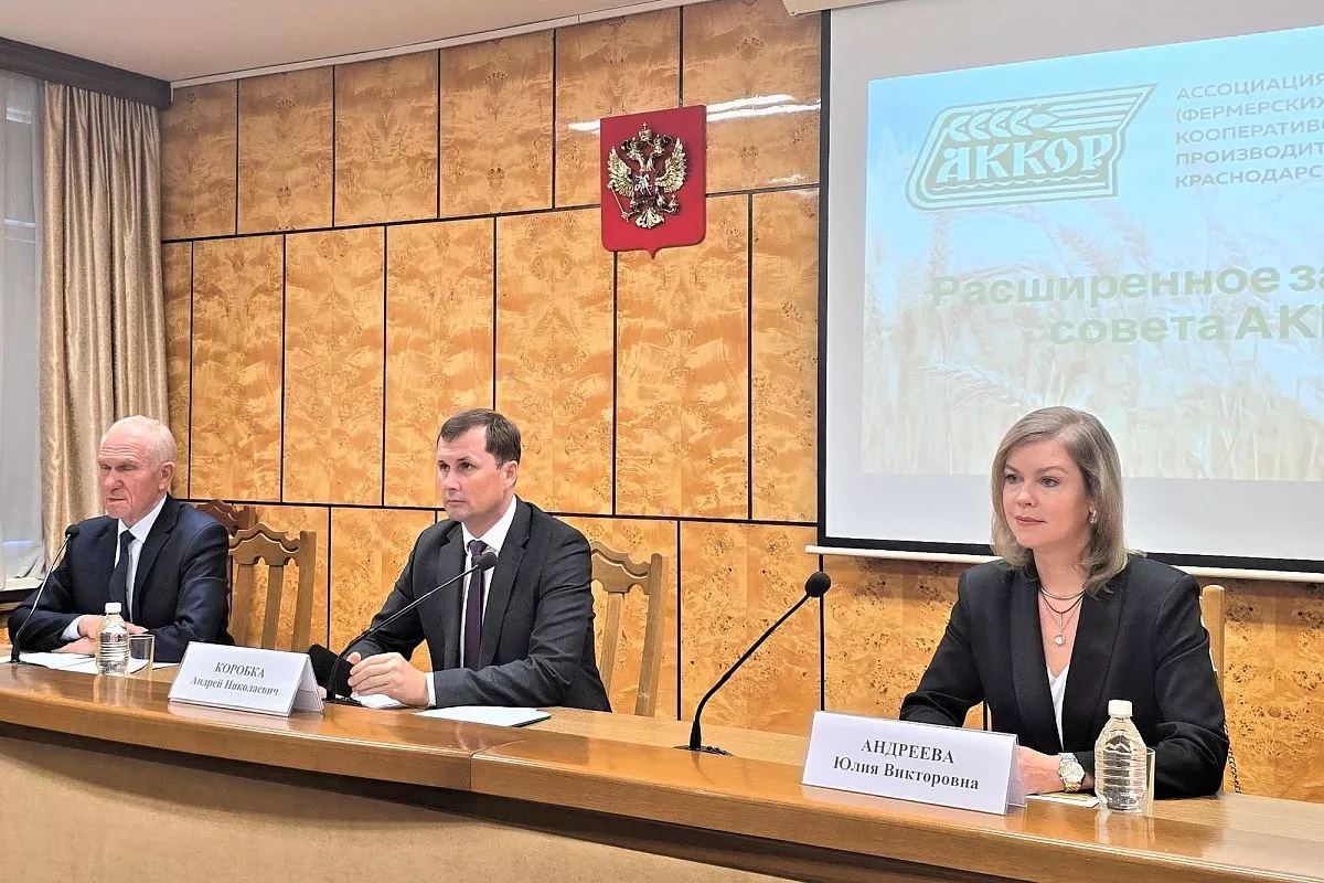 Участие в нем приняли исполняющий обязанности заместителя губернатора Кубани Андрей Коробка, председатель АККОР края Александр Шипулин, исполнительный директор по правовым и административным вопросам Национального союза агростраховщиков Юлия Андреева, представители фермерских хозяйств.