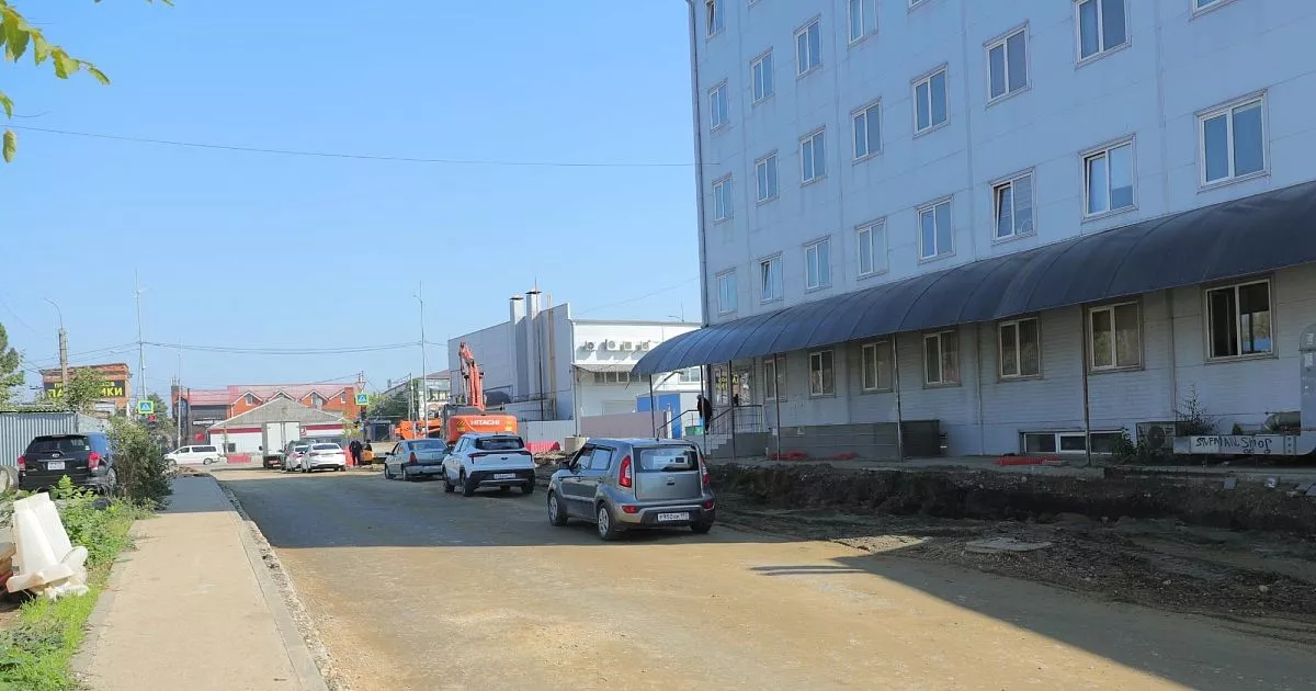 Ранее на этом участке выполнили работы по строительству ливневой канализации. Улицу открыли для проезда транспорта, однако дорога не была заасфальтирована.