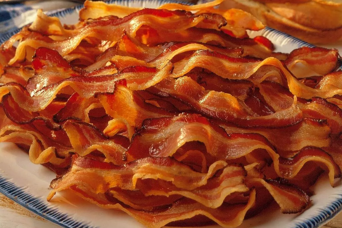 Этот салат привлекает внимание своим ярким и аппетитным видом благодаря сочному зеленому горошку, золотистому картофелю и хрустящему бекону.