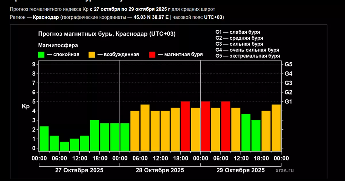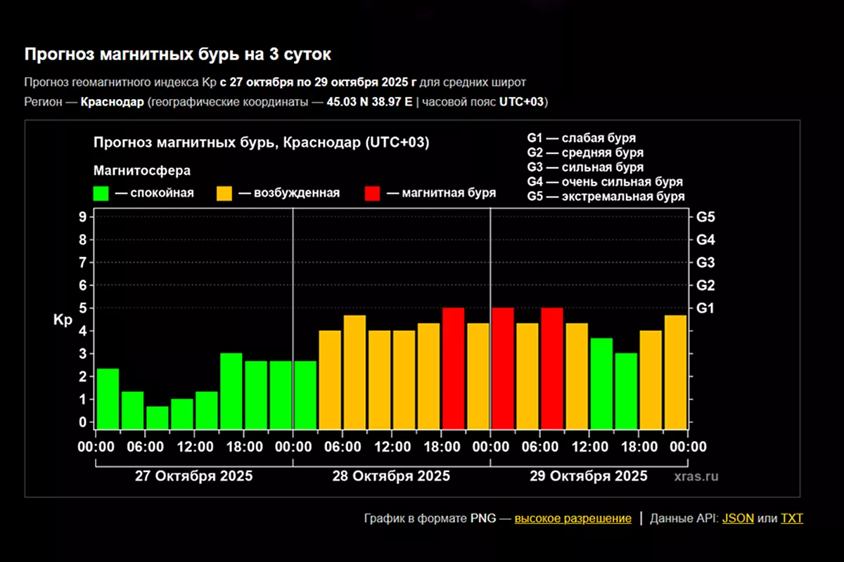 По долгосрочному прогнозу, который охватывает почти весь следующий месяц, магнитные бури ожидаются 25 и 26 ноября.
